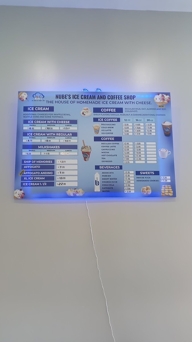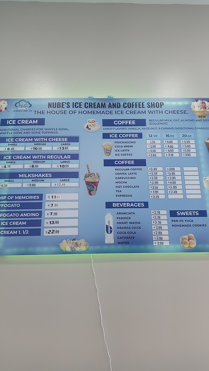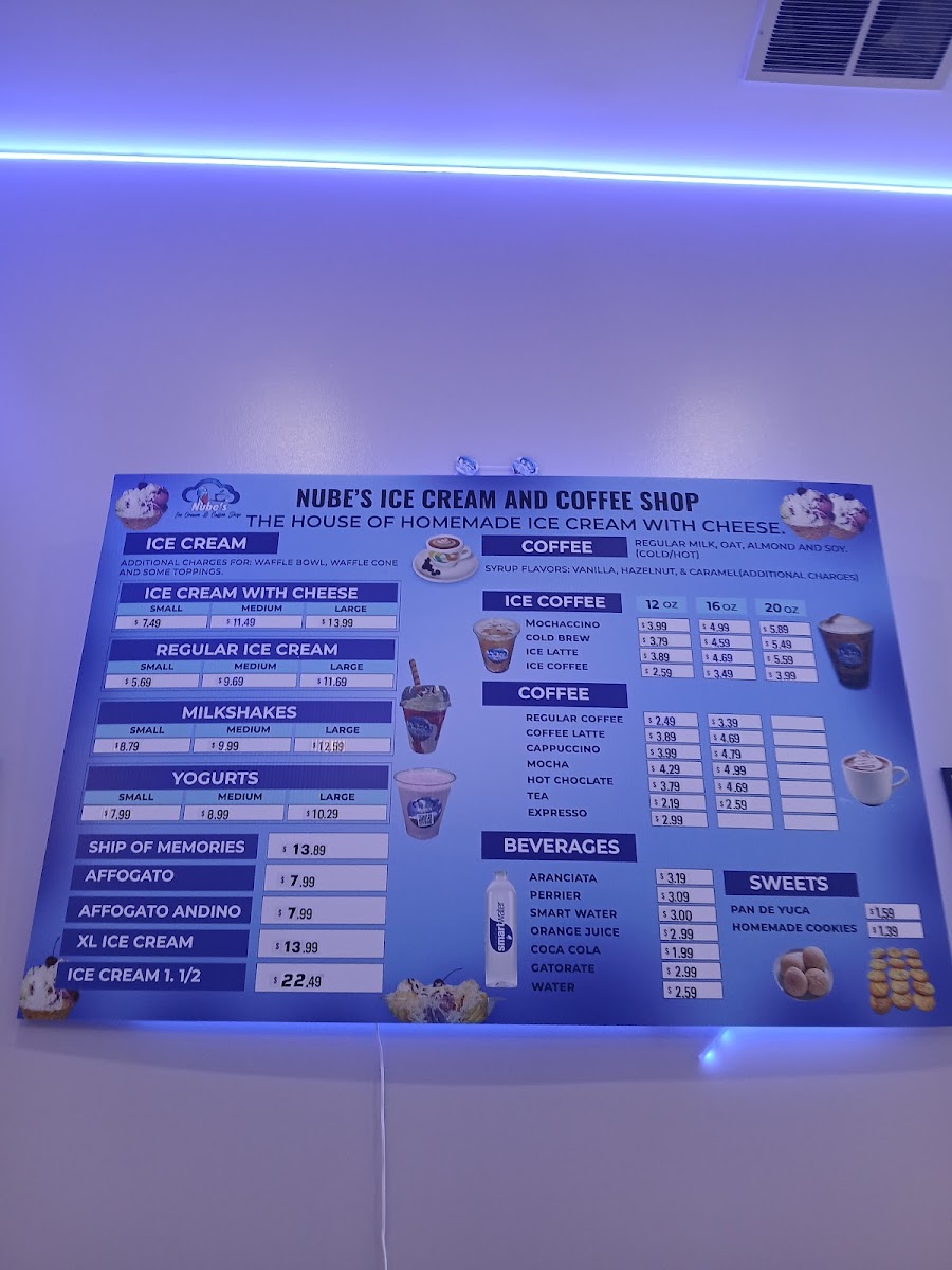 Nube's Ice Cream & Coffee Shop Menu